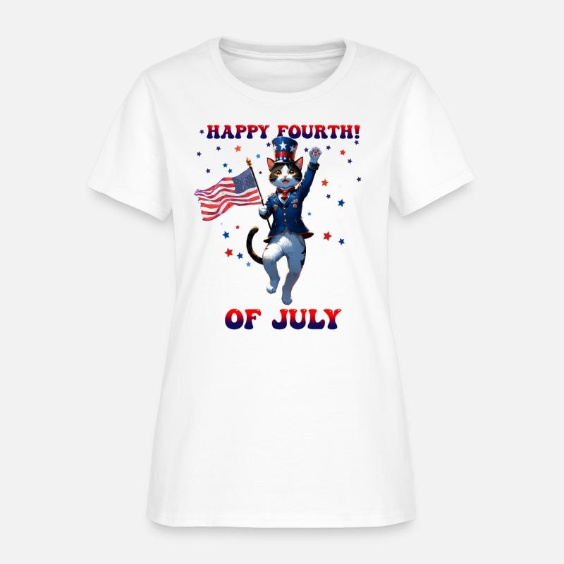 Happy Fourth of July with Patriotic Cat red blue
